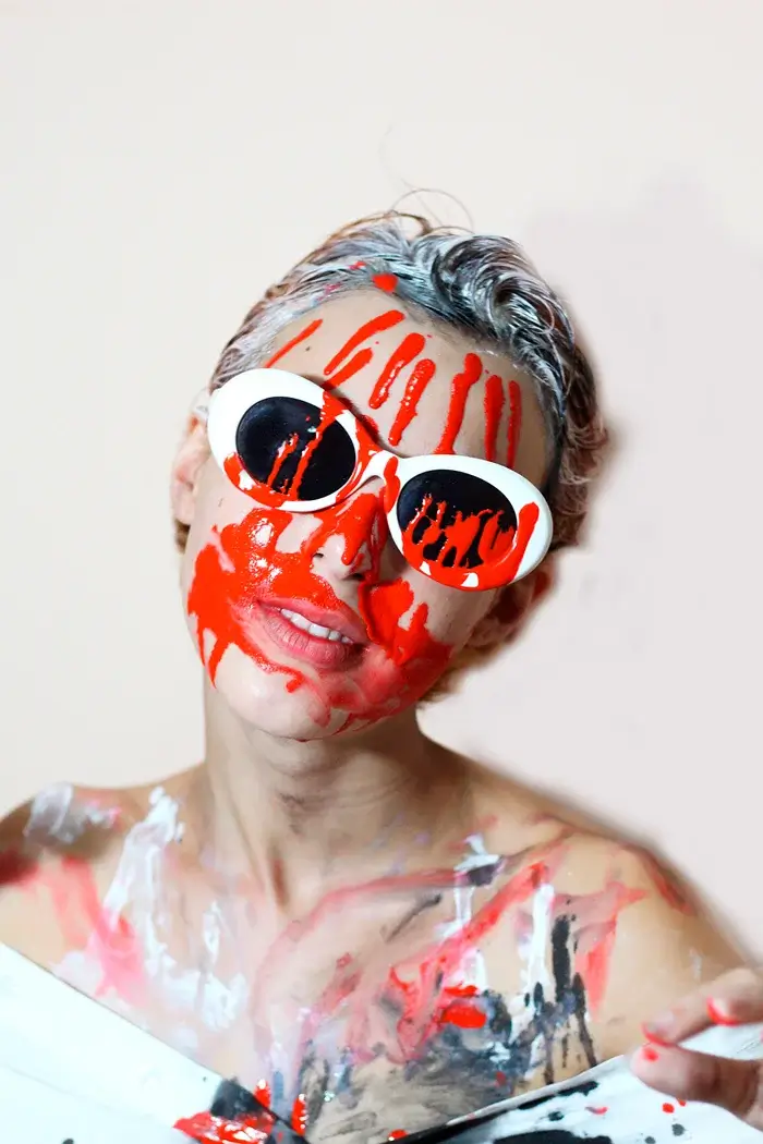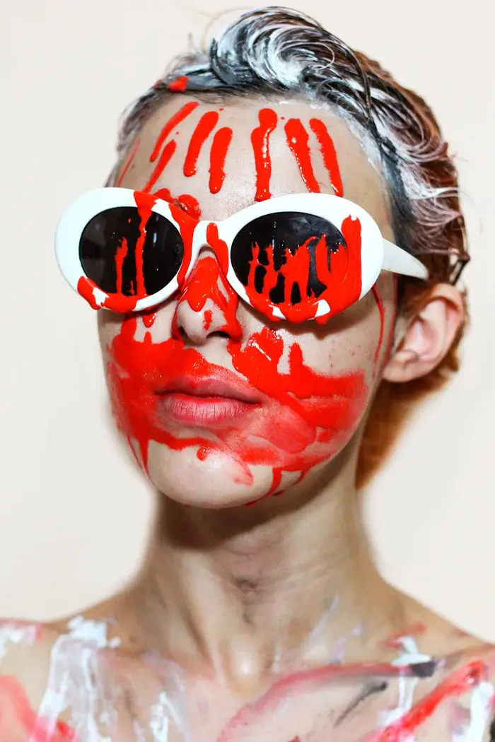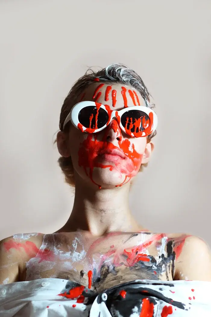 A artista Lívia cria um projeto fotográfico na busca de retratar três grandes temas que permeiam a arte: a cor, a tinta e os olhos. Sob três etapas pré-definidas com tintas nas cores branco, preto e vermelho. A modelo é exposta ao escorrer da tinta pelo seu rosto e interage a isso com as diversas possibilidades do olhar, direto (branco), olhos fechados (preto) e sob lentes de óculos (vermelho).